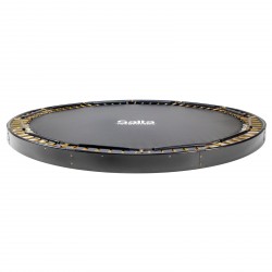 Le cadre du trampoline Royal Baseground a été spécialement conçu pour être installé dans le sol. Le cadre est doublement galvanisé, résistant aux intempéries et durable grâce à son revêtement noir. Équipé d’un bord de protection de 0,25 mm d’épaisseur et d’environ 430 mm de largeur, le trampoline offre une protection supplémentaire. Le bord de protection est équipé d’un système de filet qui se fixe facilement sur le tapis de trampoline. Ceci empêche les enfants de se prendre dans un ressort.